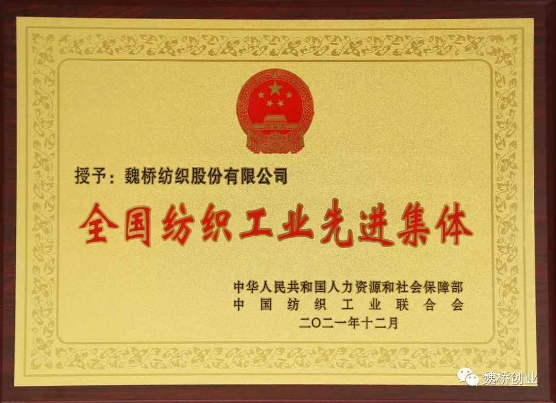 纺织行业作为国民经济的支柱行业和重要的民生产业,长期以来在党中央、国务院的坚强领导下,2000万纺织人始终站在时代的最前面,艰苦奋斗,锐意进取,为经济社会稳定和行业发展建立了卓越的功勋。此次魏桥纺织荣获全国纺织工业先进集体,是人力资源和社会保障部、中国纺织工业联合会对我公司各项工作的充分肯定和褒奖,这必将激励我们在新的时期肩负起更大的责任和担当,为推动中国纺织行业高质量发展,做出新的更大贡献。