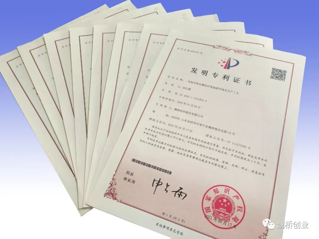 公司始终把创新作为企业发展的源动力,不断加大技术研发投入,建立了完善的技术创新体系,连续多年研发投入占销售收入的比重超过3%。每年自行设计开发各类高技术含量、高档次、高附加值产品4000 多个,纺织产品涵盖了十二大系列1万多个品种,棉纱最高纱支达到500支,坯布最高密度达到1800根,均处于同行业领先水平,共有200多项创新成果获得了专利。“魏桥”牌纯棉本色纱线、纯棉本色坯布、纯棉牛仔布被中国棉纺织行业协会推荐为“最具影响力产品品牌”。“一次织造成型羽绒被”被中国纺联评为“中国十大类产品”。公司不断延伸产业链,全力打造“嘉嘉家纺”和“向尚运动”品牌,在智能穿戴方面不断加大技术研发,提高深加工产品的比重和附加值,加快推进企业转型升级。