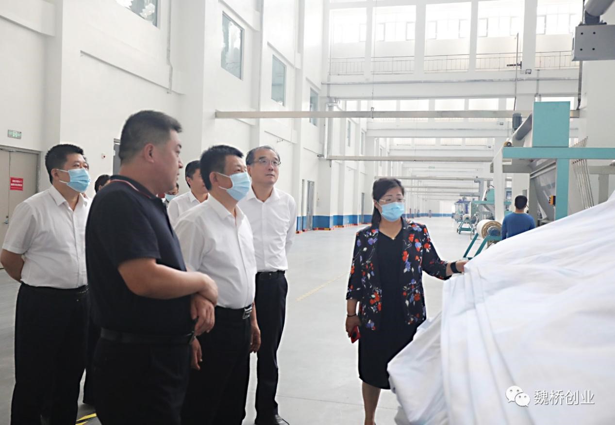 9月6日,滨州市委常委、组织部部长、统战部部长周鸿来魏桥创业集团调研特宽幅绿色智能印染工厂升级改造项目建设情况。邹平市委书记吕明涛及相关部门领导同志参加活动。集团公司党委书记、总经理张红霞陪同参观调研。