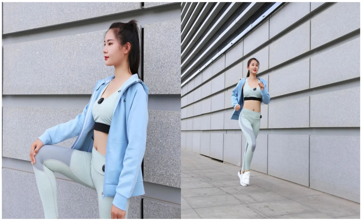 系列产品将柔性导电、纺织基弹性传感技术、人体感控加热技术、控制模块结合运动服装人体工学进行创新设计,在实时监测人体运动状态,提升运动乐趣的同时,能够对运动过程进行保暖防护,将监测到的数据通过APP系统专项分析后进行云端上传,实现对运动过程中数据的实时分析。