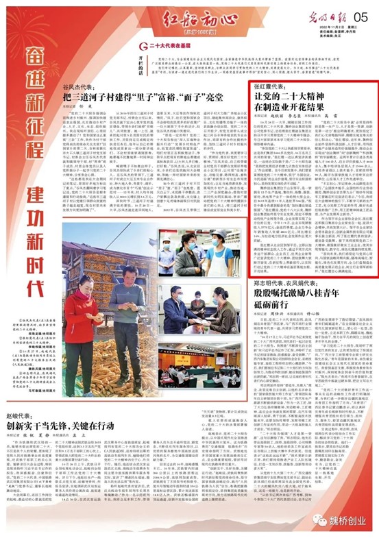 张红霞从北京回到邹平后,立即以饱满的精神状态投入工作,通过不同方式向身边干部群众、企业员工、优秀企业家等广泛宣讲党的二十大精神,团结鼓舞大家踔厉奋发,在新征程上勇毅前行,以实际行动让党的二十大精神在基层落地生根、开花结果。