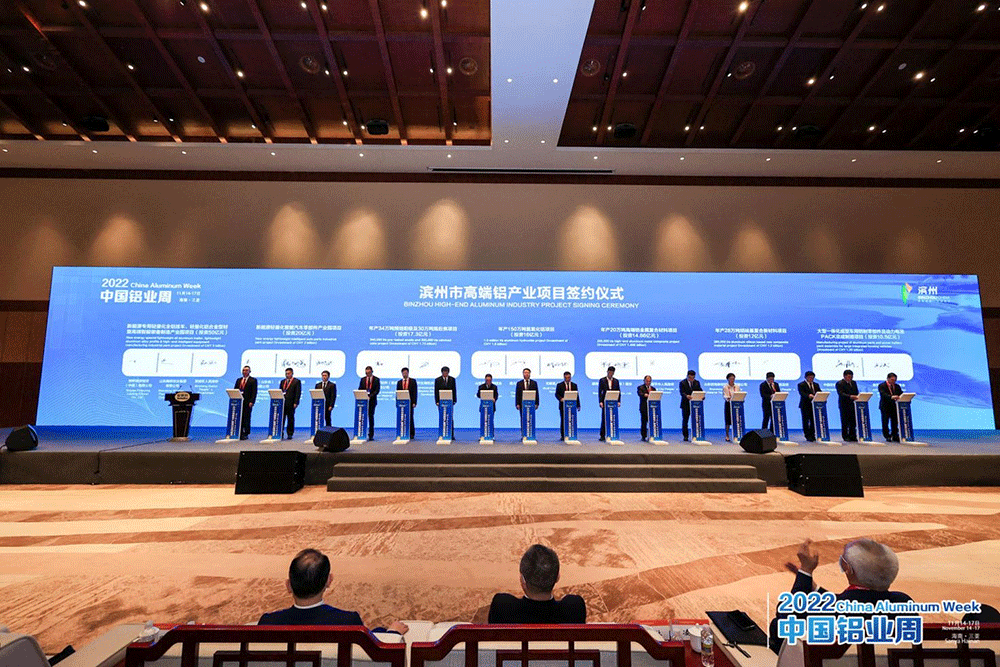 开幕式结束后,滨州市高端铝产业项目签约仪式在会场举行,30余家新落户滨州的涉铝企业与所在地市县区、与上下游企业集体签约。