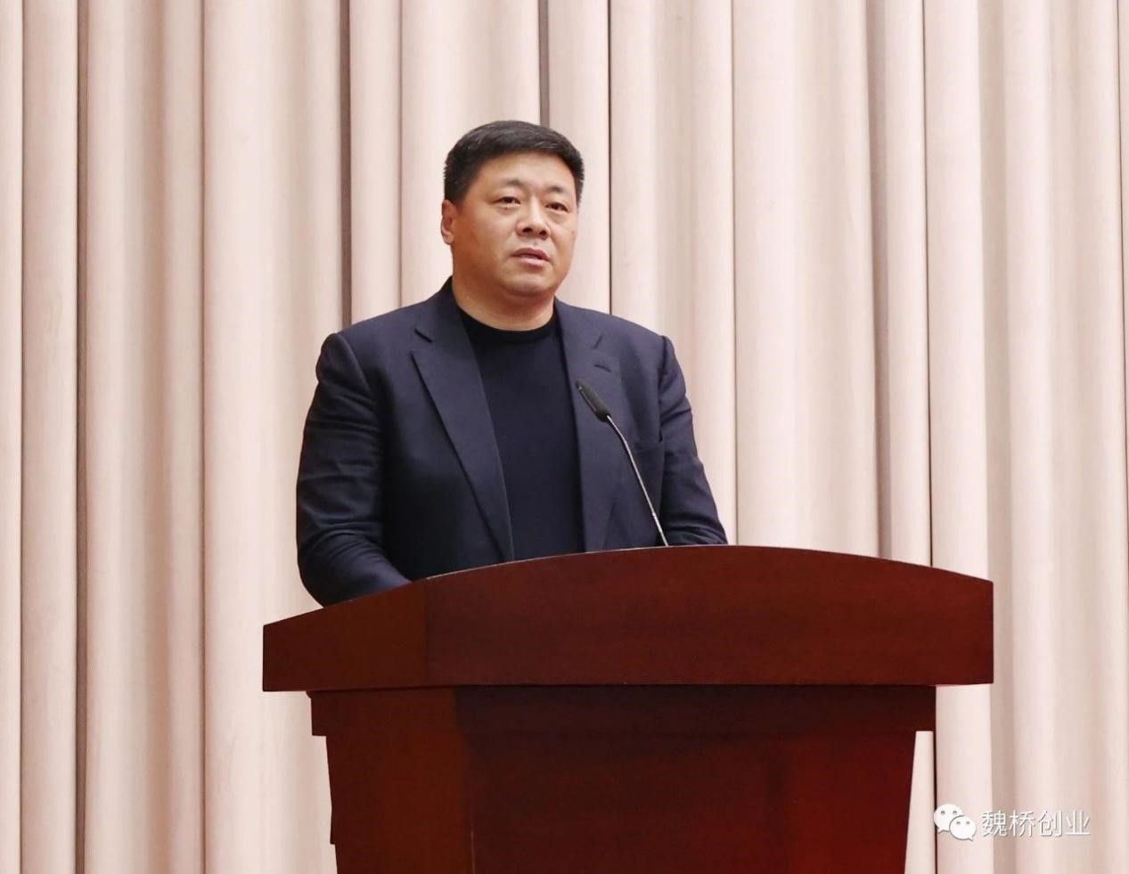 魏桥创业集团董事长张波在会上作发言,魏桥创业集团党委书记、总经理张红霞参加会议。