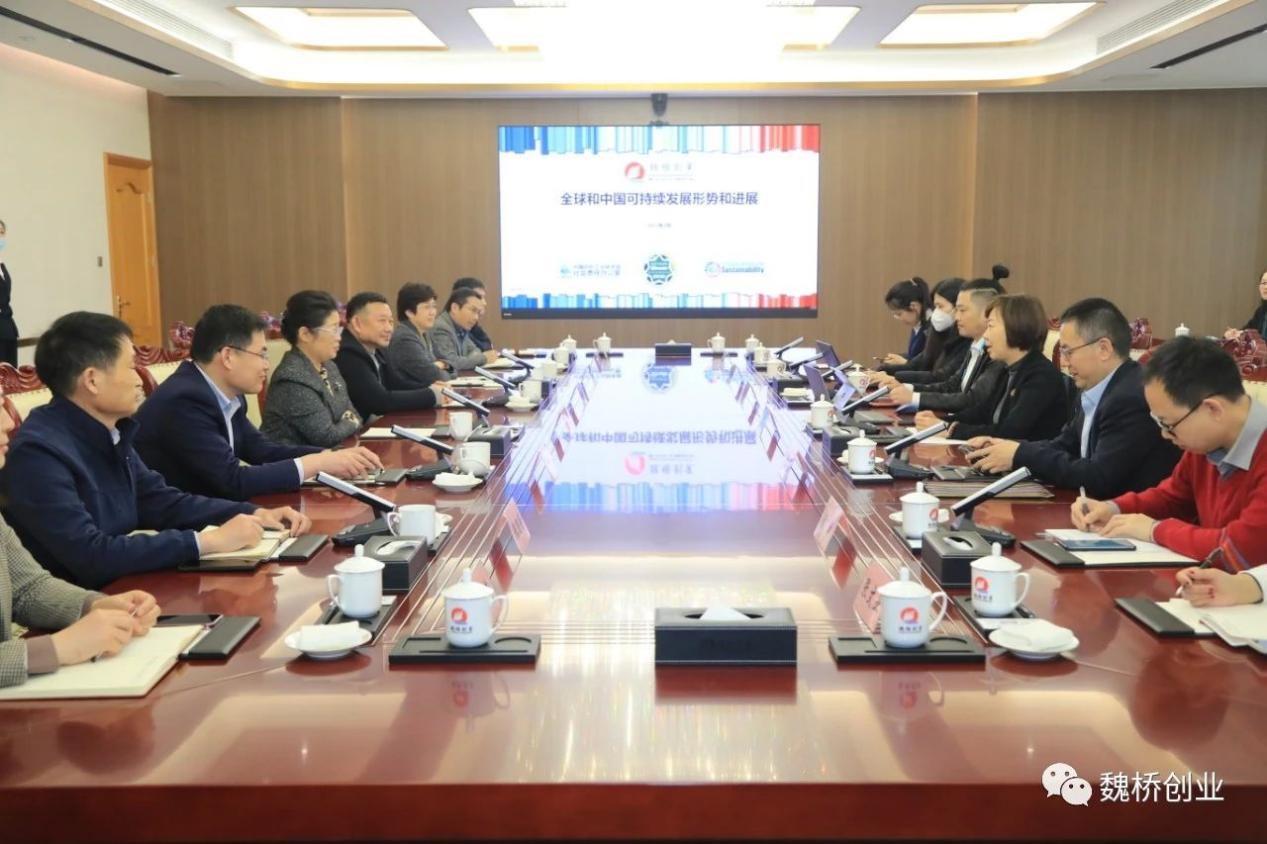 2月10日,中国纺联社会责任办公室主任阎岩、中国棉纺织行业协会会长董奎勇一行来魏桥创业集团调研。集团公司党委书记、总经理张红霞与阎岩、董奎勇一行举行座谈会,就共同推进企业纺织板块“双碳”工作走向深入、促进行业绿色低碳高质量发展作了深入交流与探讨。