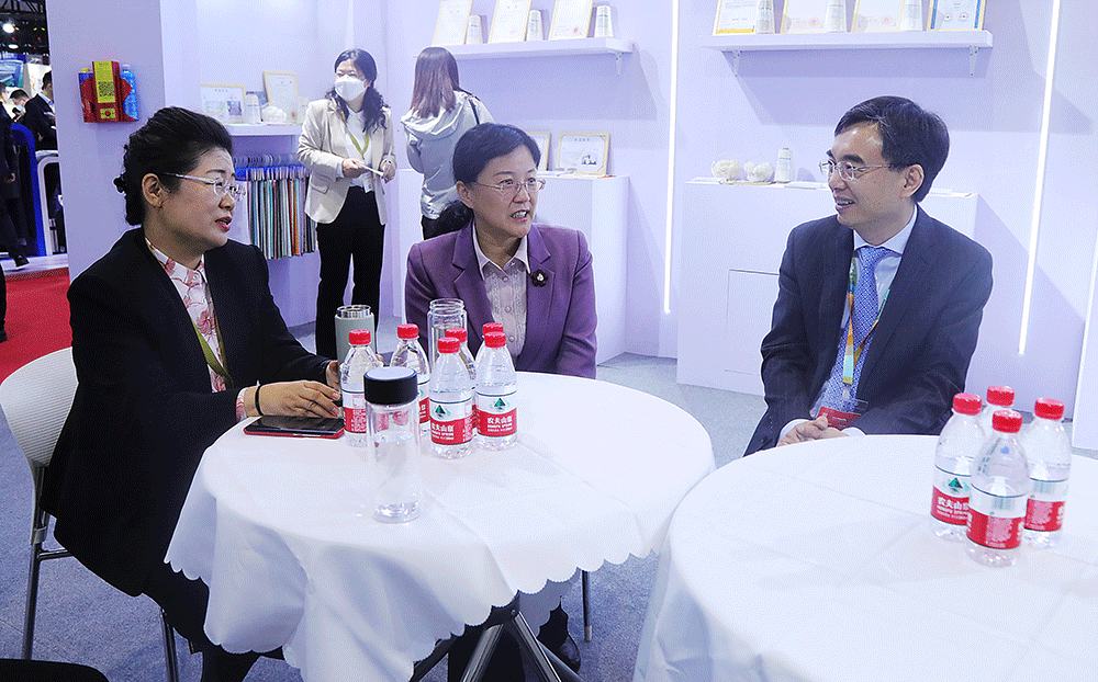 座谈前,毕志伟、张红霞先后到位于国家会展中心5.2馆、6.2馆、8.2馆的魏桥创业集团三大专业展位视察指导。毕志伟详细了解了我集团纺织板块近年来的研发创新成果,对我集团持续加大研发投入,积极调整产品结构,提升产品舒适性、智慧化水平,引领行业创新发展给予高度评价。