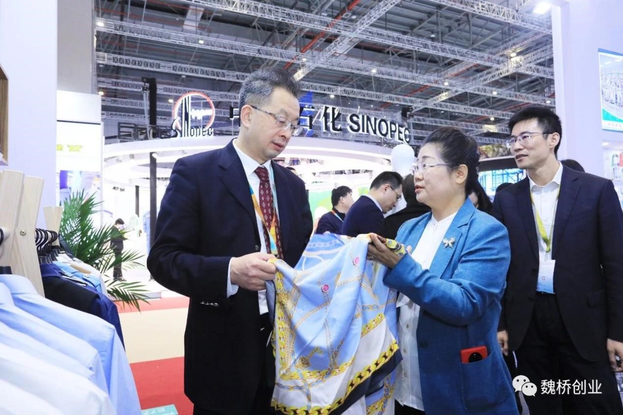 3月29日,2023中国纺联春季联展第二天,国家工信部消费品工业司司长何亚琼到魏桥创业集团综合展位参观指导。中国棉纺织行业协会监事长朱北娜参加活动。