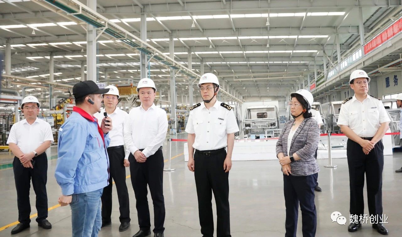 在魏桥轻量化基地,刘卫一行观看了专利合金产品、全铝小物流车身、轻量化结构件、泡沫铝、全铝底盘、全铝公交车身等,并到山东宏奥全铝车身生产线实地察看。在魏桥纺织研发创意成果展厅,观看了智能纺织研发成果、十大类纺织创新产品、绿色低碳产品、功能型织物,嘉嘉家纺、向尚运动相关产品,听取了张红霞对魏桥纺织持续加大科研投资力度,主动调整产品结构,加强新产品研发,引领行业绿色低碳高质量发展情况的介绍,并走进绿色智能化分厂,观看了解了智能化纺织的生产工艺流程。