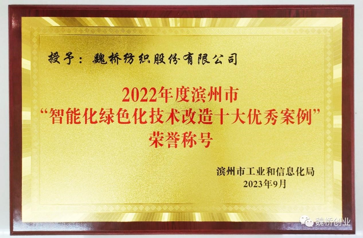 9月26日,滨州全市工业企业智能化绿色化技术改造暨统计业务知识培训举行。培训会上,公布了2022年度滨州“智能化绿色化技术改造十大优秀案例”并进行了颁奖,魏桥纺织股份有限公司绿色智能化工厂入选“十大优秀案例”并位列榜首。