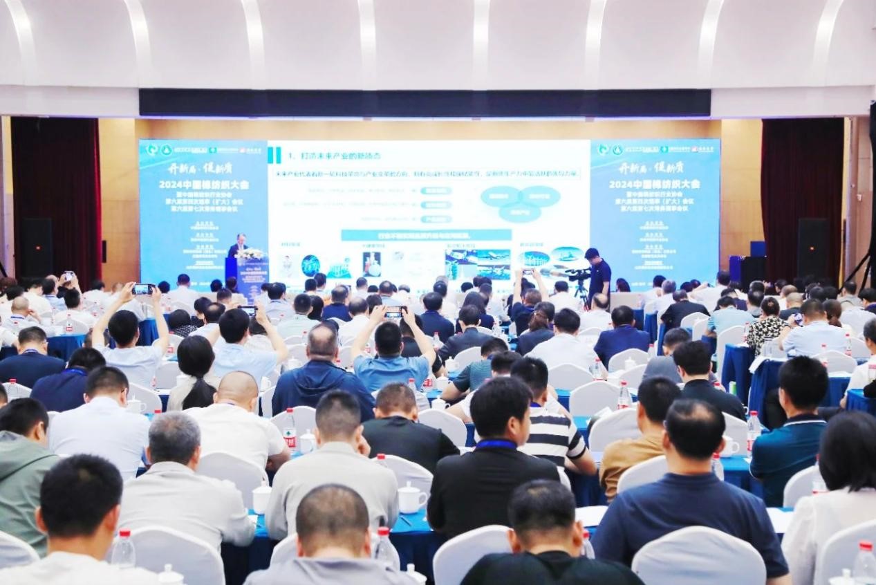 5月24日,2024中国棉纺织大会暨中国棉纺织行业协会第六届第四次理事(扩大)会议、第六届第七次常务理事会议在山东邹平召开。大会由中国棉纺织行业协会主办,滨州市纺织行业协会承办,赛特环球机械(青岛)有限公司、全国棉花交易市场协办,山东魏桥创业集团有限公司特别支持。