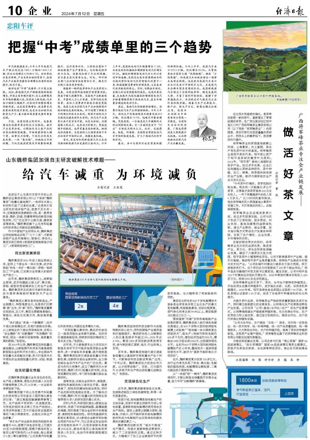 从“一块铝”到“一辆车”,魏桥集团逐绿而行,不断以制造含绿量提升发展含金量,奋力书写“创新魏桥”新篇章。