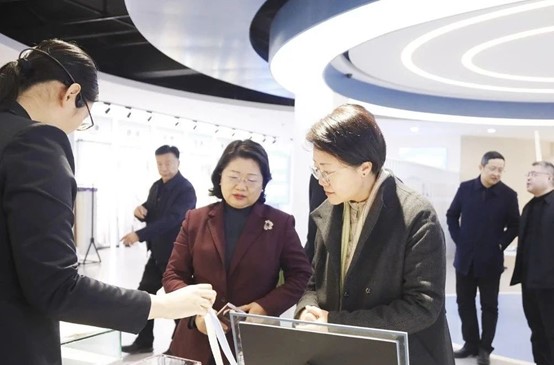 在集团公司党委书记、总经理张红霞的陪同下,考察团一行实地考察了魏桥特宽幅印染和魏桥纺织研发创意成果展厅,听取了工作人员对项目概况、工艺流程、技术研发、产品性能等情况的介绍;通过瞻仰参观张士平纪念馆,详细了解了张士平老董事长的生平事迹和我集团跨越式的发展历程。参观过程中,张红霞向考察团一行介绍了我集团在推动纺织板块自动化、智能化、信息化、绿色化转型升级方面的探索创新和实践成果。